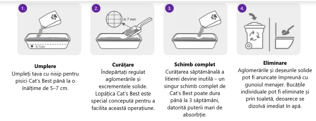 Eficiență de durată - Oferă o utilizare îndelungată – un singur strat poate rezista până la 5 săptămâni. Ideal pentru 1 pisica